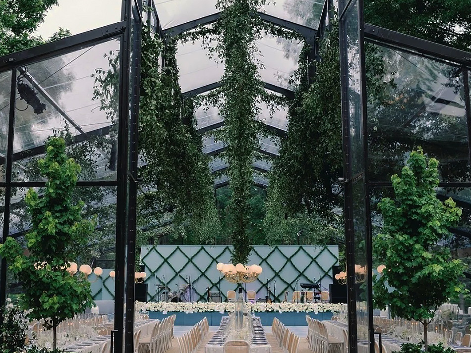 When it comes to hosting weddings, our garden marquees truly showcase their unique charm. The transparent roof allows the newlyweds and guests to gaze at the starry sky while enjoying delicious food and laughter, immersing themselves in the romantic embrace of nature. The marquee interior can be adorned with greenery and fresh flowers, creating a natural yet dreamlike wedding setting that transforms every celebration into an unforgettable memory.